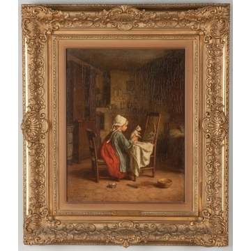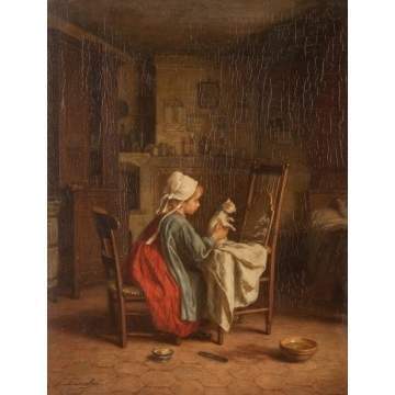 | Lot #: 325 Andre Henri Dargelas (French, 1828-1906) Young girl with kitten |