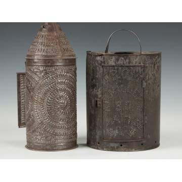 | Lot #: 379 Punched Tin Paul Revere Type Candle Lantern with Glass Front |