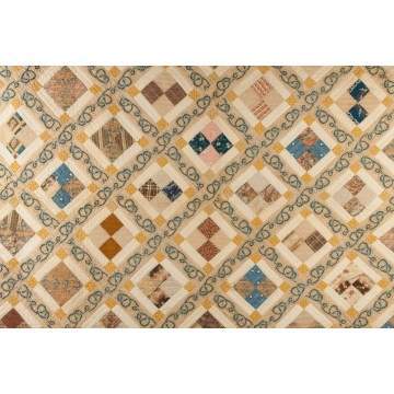 | Lot #: 390 Pieced Quilt with Blue Squiggle Sashing |