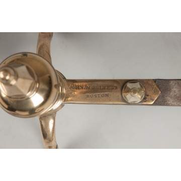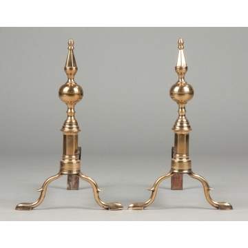 | Lot #: 409 Period John Molineux, Boston, Brass Steeple Top Andirons |