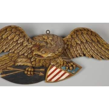 | Lot #: 414 Carved and Painted Eagle with Shield and Arrows |