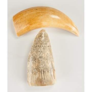 | 20th cent. "The Whaler James Arnold Out of New Bedford and Boston, 1852." L 6". Dated 1840 at top, 'Rebecca' in heart. "E. Pluribus Unum" & "Ja.S Nolt, NY." L 5". |