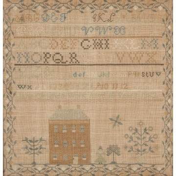 | Lot #: 445 American Needlework with House, Figures & Flowers |