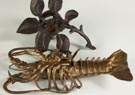 | Peach with snail, snail missing head, original patina, Ht. 4" L 9". Lobster, broken tail, missing eye, loss & repairs, L 11 1/2". |