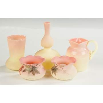 Condition Left rose bowl, sgn. Webb, chips to rim. Right rose bowl, chips to rim. |