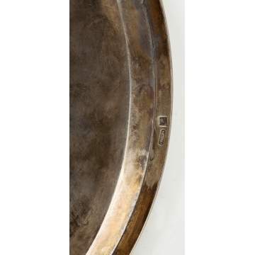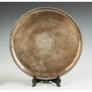 | Tray is monogrammed, 32 ozt. Tray Dia. 14". Box incl. plastic liner, 13 ozt., Box W 6". Pitcher is silver mounted, monogrammed, 19th cent., Ht. 7" |