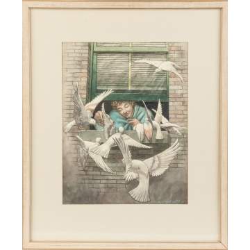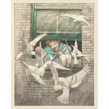 Kyra (Gaither) Markham (American, 1891-1967) Girl at window feeding birds