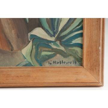 | P. Hallowell Abstract Landscape; Sgn. lower right, P. Hallowell; Oil on canvas; Original condition & frame; 16" x 24". Halfred Tygesen Pastel landscape, Sgn. lower left, H. Tygesen; original condition; sight 15 1/2" x 19 1/2" |