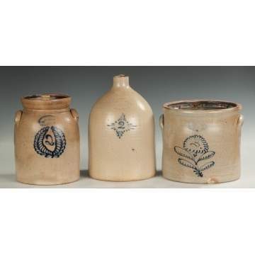Condition Jar on left has chips to rim & hairline. Center, small hairline in body. One on right, chip along base. |