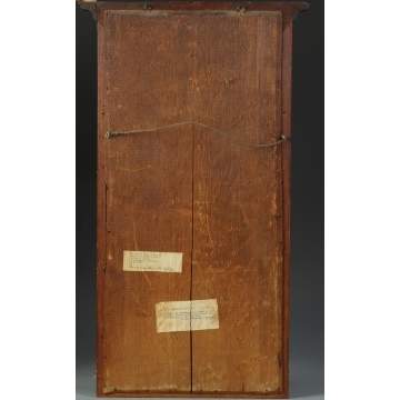 | w/Fluted Columns & Reverse Painted Tablet Replaced turned piece at top. Some veneer chips.Ht. 32" W 18" $200-$300 |