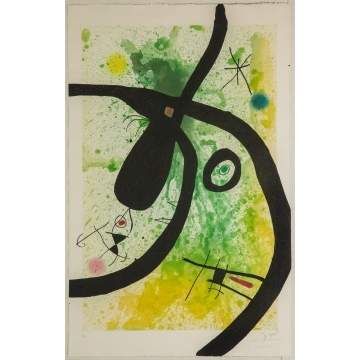 | Signed lower right in pencil, Miro. Initialed lower left, HC. Etching, aquatint and carborundum in colors, 1969, on Arches wove paper. |