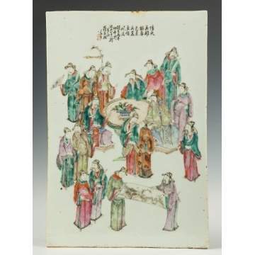 | Lot #: 258 Chinese Hand Painted Porcelain Plaque of Scholars |
