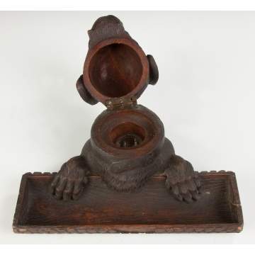 | Lot #: 412 Black Forest Carved Wood Dog Inkwell and Pen Tray |
