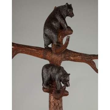 | Lot #: 570 Carved Black Forest Coat Rack and Umbrella Stand with Bear and Cubs |