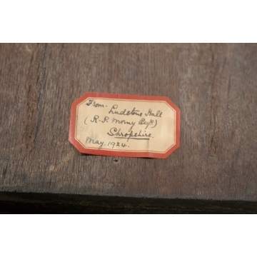 | 19th century. Painted oak case. 8 bells. Weight driven movement. Label: Ludstone Hall, Shropshire, May 1924. |
