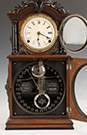 | Walnut case and ebonized trim with old finish. Original dials. Original pendulum and labels. 8 day time and strike spring driven calendar movement. |