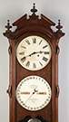| Carved walnut case, old refinish; bottom pediment restored. Original paper dials, some toning. 8 day weight driven movement. |