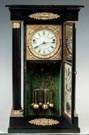 | Ebonized case with four full columns. Original painted paper dial with stamped brass. Original wheel cut glass tablet, cracked. Fusee movement. Nice paper label. |