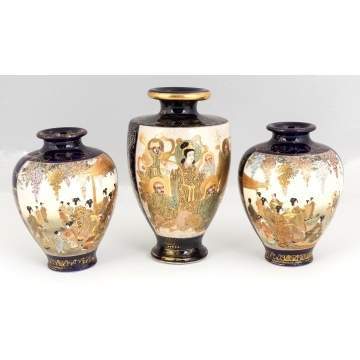 | Lot #: 378 Three Hand Painted Japanese Satsuma Vases |
