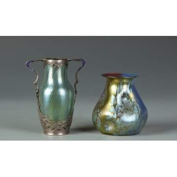 | Lot #: 576 Fine Loetz Silver Mounted Vase and Sgn. Loetz Austrian Oil Spot & Dimpled Vase |