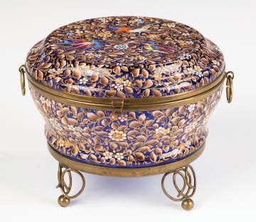 | Lot #: 128 Moser (Probably) Jewelry Box with Enameled Birds and Flowers |