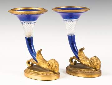| Lot #: 130 Pair of Gilt Bronze with Cobalt Overlay and Cut Vases |