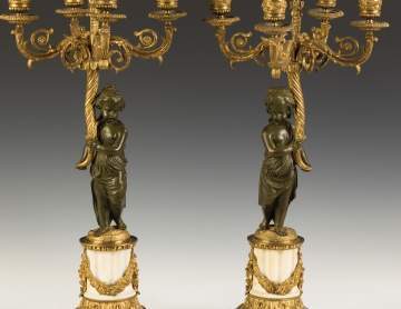 | Lot #: 239 Pair of French Marble and Gilt Bronze Candelabras |