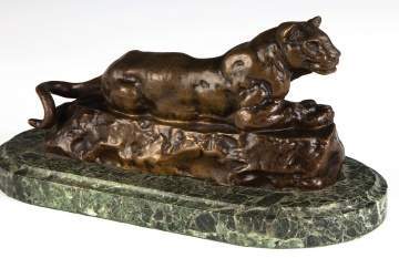 | Lot #: 245 Antoine-Louis Barye (French, 1796-1875) Bronze Mountain Lion |