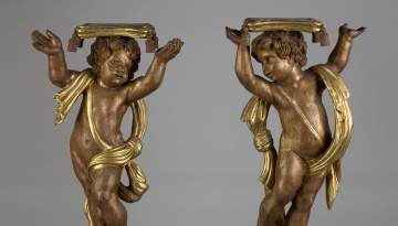 | Lot #: 284 Carved and Painted Putti Stands |
