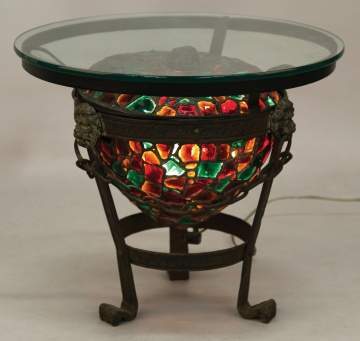 | Early 20th century. Lions heads, glass table top. |