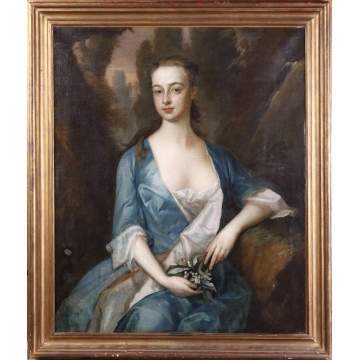 | Lot #: 670 Michael Dahl (1656-1743) Woman w/blue dress holding |