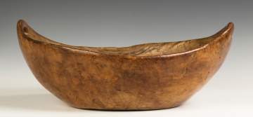 | Lot #: 384 Oval Burl Bowl with Carved Handles |