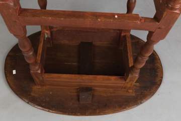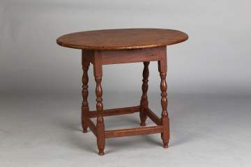 | Mmid-18th century. Pine and maple. Turned legs and button feet. |