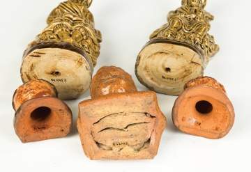 | Lot #: 391 Decorated Redware Doll Heads and Sewer Tile Head |