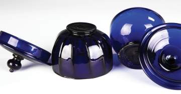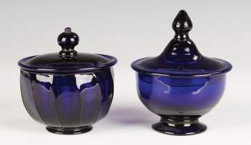 | Lot #: 394 Two Cobalt Blue Covered Sugar Bowls |