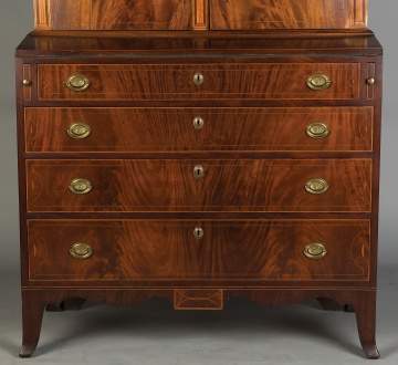 | Lot #: 399 Seymour School, Boston, Hepplewhite 3-Piece Secretary |