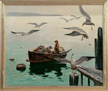 Anthony Thieme - (American, 1888-1954) "Seagulls & Fisherman"