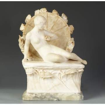 | 676. Art Deco Alabaster Lamp, 1 foot broken & reattached. A few chips to fingers. Ht. 18" W 14" D 10" Est. $700-$1,000 |
