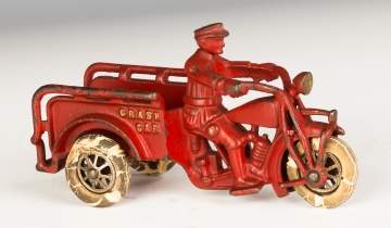 | Lot #: 5B Hubley Cast Iron Indian Crush Car Motorcycle |