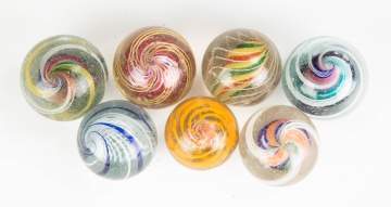 | Lot #: 42 Seven Vintage Swirl Marbles |