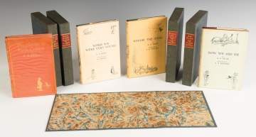 | "The House at Pooh Corner", E.P. Dutton & Co, Inc. Publishers, NY. First Edition, C. 1928, signed and numbered 172/250. "When we Were Very Young", Methuen & Co., London; First pub. 1924. "Winnie the Pooh"; Methuen & Co., London; First pub. 1926. |