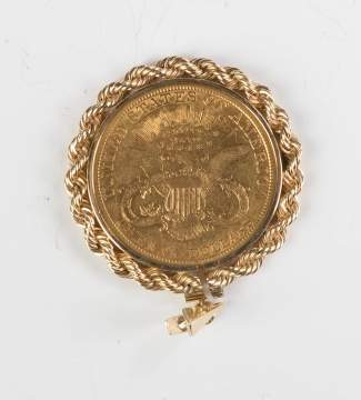 1897 Twenty Dollar Liberty Head Gold Coin Mounted in a Pendant