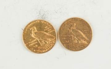 Two 1925 Two and a Half Dollar Indian Head Gold Coins
