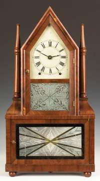 | Lot #: 152 Birge and Fuller Wagon Spring Four Candlestick Shelf Clock |