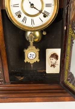 | Rosewood case; old refinish. Dial has been professionally redone. Original glass. 8 day time and strike spring driven brass movement. Good label. |