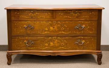 | Circa 1900. Inlaid mahogany with serpentine front. |