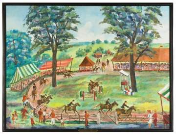 | Lot #: 449 Annie Lenney (American, B 1910) "Horse Race, Branchville Fair" |