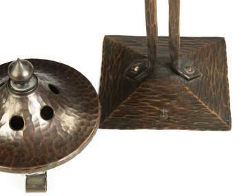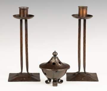 | Lot #: 491 Roycroft Hand Hammered Copper Candlesticks and Incense Burner |