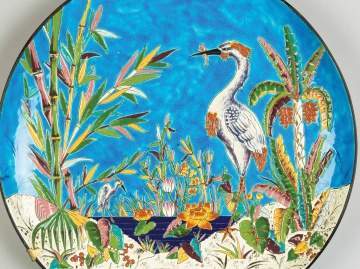 | Lot #: 528 Longwy Ceramic Charger with Heron and Marsh |