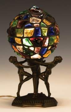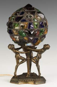 | Lot #: 531 Art Deco Leaded Chunk Glass Lamp with Women |